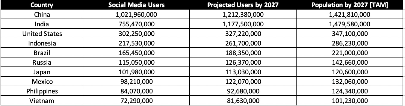 One of them stands out from the rest. India has the second most social media users in the status quo with over 750M. The only other nation it falls behind is China, which is pretty much inaccessible to Western social media platforms given the CCP’s strict internet censorship protocol. Furthermore, India is projected to have almost 1.2B people on social media by 2027, more than the next six countries combined. India is by far the largest accessible social media market in the world and it will only continue to grow in the future. Therefore, the Indian market is a critical flashpoint in the Threads-Twitter[X] conflict and could single-handedly determine the winner [regardless of who wins in other markets].